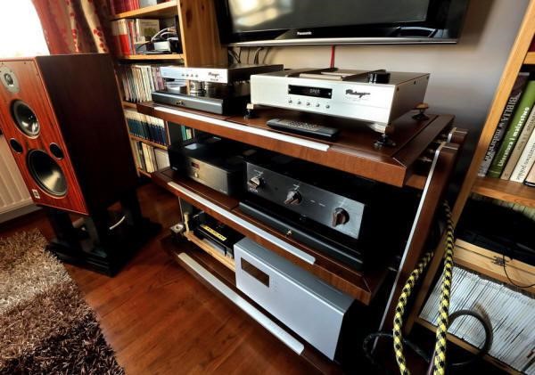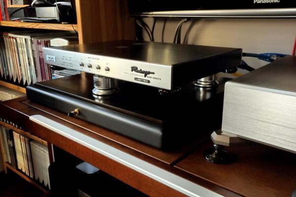 Я использовал цифровой межблочный кабель Harmonix HS-102 для подключения транспортов к DAP и силовые кабели Harmonix X-DC350M2R Improved Version для питания компонентов системы. Ножки транспорта CDP-777 расставлены так широко, что я не смог установить его на платформу Acoustic Revive RAF-48H, и он был установлен непосредственно на полку, снятую со стойки Finite Elemente Pagode Edition. На платформу я установил ЦАП, который дополнительно был развязан через три ножки Franc Audio Accessories Ceramic Disc Classic.