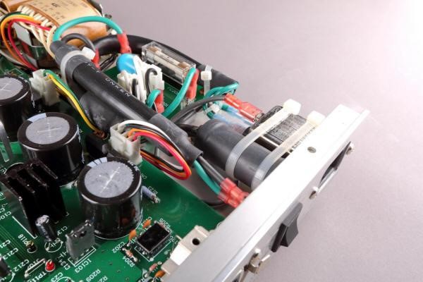 Секция источника питания поистине представляет собой нечто выдающееся. К розетке питания подключены сетевые фильтры от 2Pi и Enacom, еще одной компании, владельцем которой является Киучи. Среди других используемых здесь компонетов - очень качественный предохранитель от HiFi-Tuning и два элегантных трансформатора с сердечником типа C-core. Они имеют пять вторичних обмоток (отдельные обмотки для аналоговой секции, аналоговой и цифровой части цифроаналогового преобразователя, схемы фазовой автоподстройки частоты и цифровой секции). Здесь присутствует множество фильтрующих конденсаторов и прецизионных регуляторов напряжения. Это прецизионное устройство, использующее множество снятых с производства компонетов из запасов NOS. (NOS - это New Old Stock, старый новый сток).